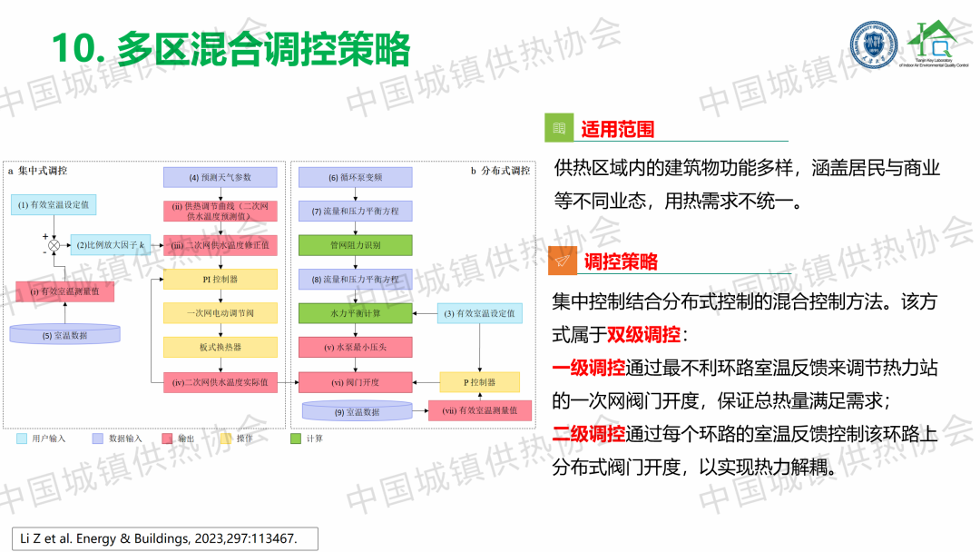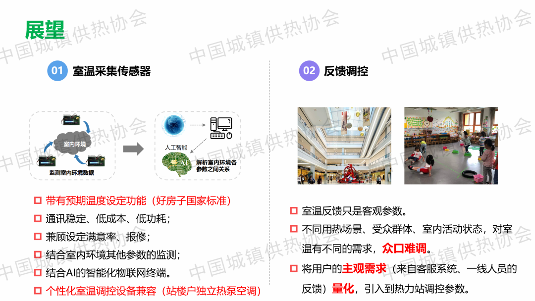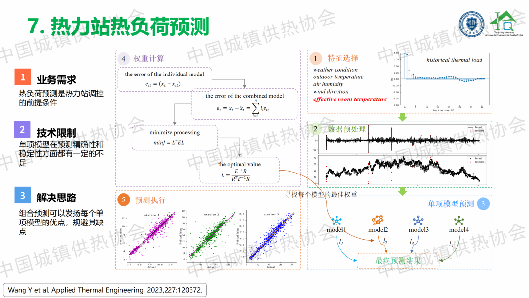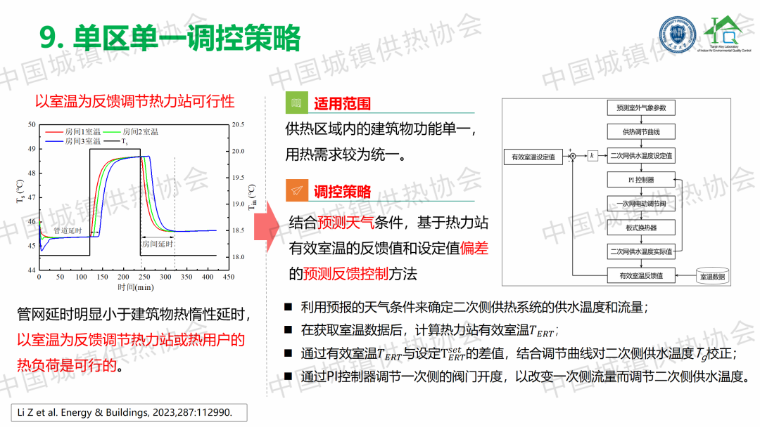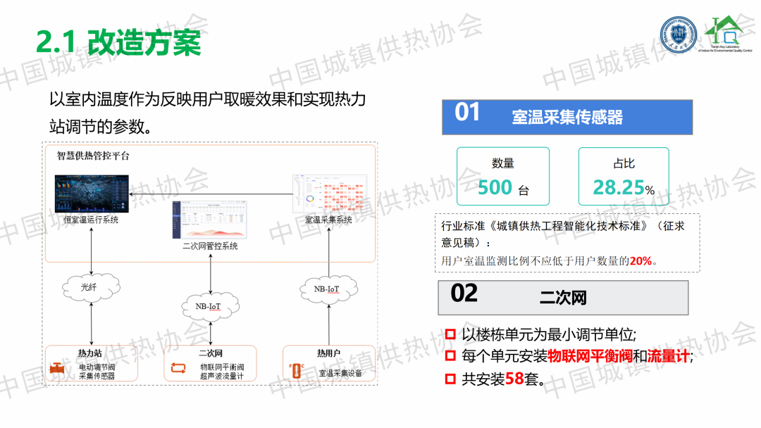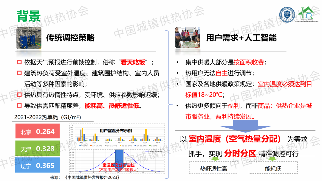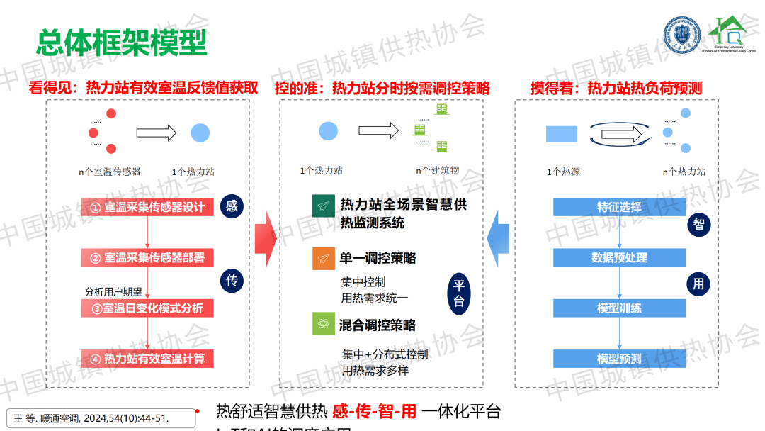 “大數據物聯(lián)網賦能智慧供熱”主題論壇上,天津大學教授、博導劉俊杰以《“感傳智用”室溫大數據智慧供熱技術》為題,從研究背景、研究內容和項目案例三個方面,總結提出了一套以監(jiān)測分析用戶室溫為抓手的分時分區(qū)、按需供熱、智慧低碳調控技術路線;建立了一種結合預測天氣條件,基于熱力站有效室溫的反饋值和設定值偏差的預測反饋控制方法。