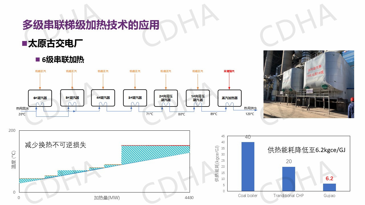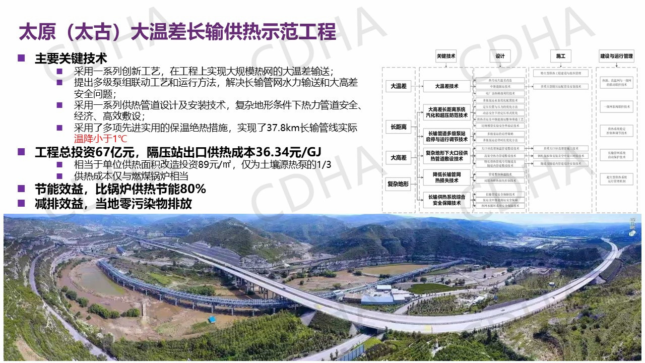 所以最后的結(jié)論是這樣,我們通過5個特征,就是降低回水溫度、高效的余熱利用、熱電氣協(xié)同、燃氣調(diào)峰和長輸供熱這五個特征來支撐了四個改變,也就是以低溫、低品位、余熱為主的,三級管網(wǎng)及能源站系統(tǒng)、熱泵加儲能設(shè)施,這種對整個項目的進行四個重大的改變,從而實現(xiàn)三個效果,即節(jié)能90%、減排90%、成本和燃煤鍋爐相當,最終實現(xiàn)我們低碳和低成本的兩個目標,進而就構(gòu)建了我們中國清潔供熱2025模式。好,我匯報完畢,謝謝。