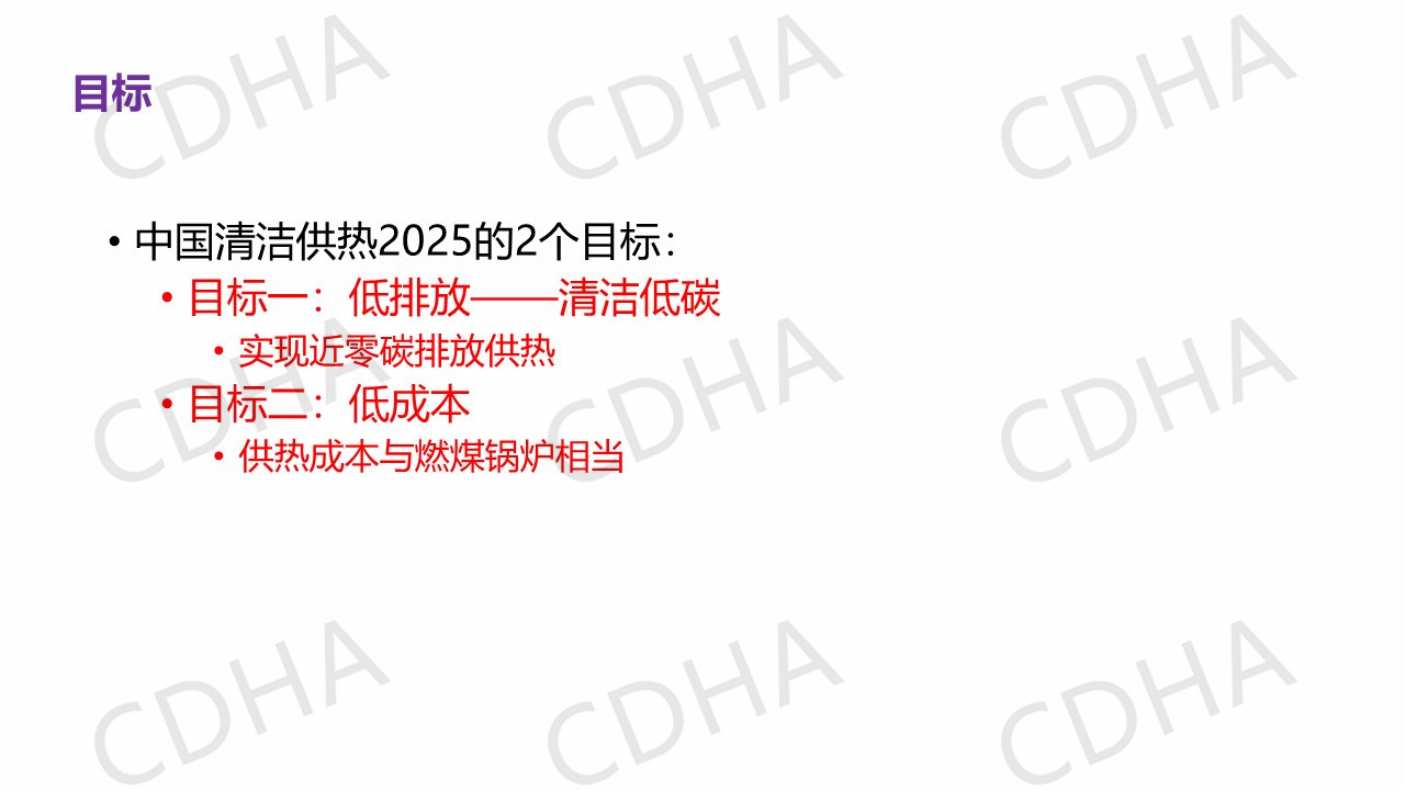 我們希望通過我們的總結(jié)得出具有中國特色的清潔供熱模式,也就是我們說的中國清潔供熱2025,我將從5個方面進行匯報。首先我們追求的目標是什么?