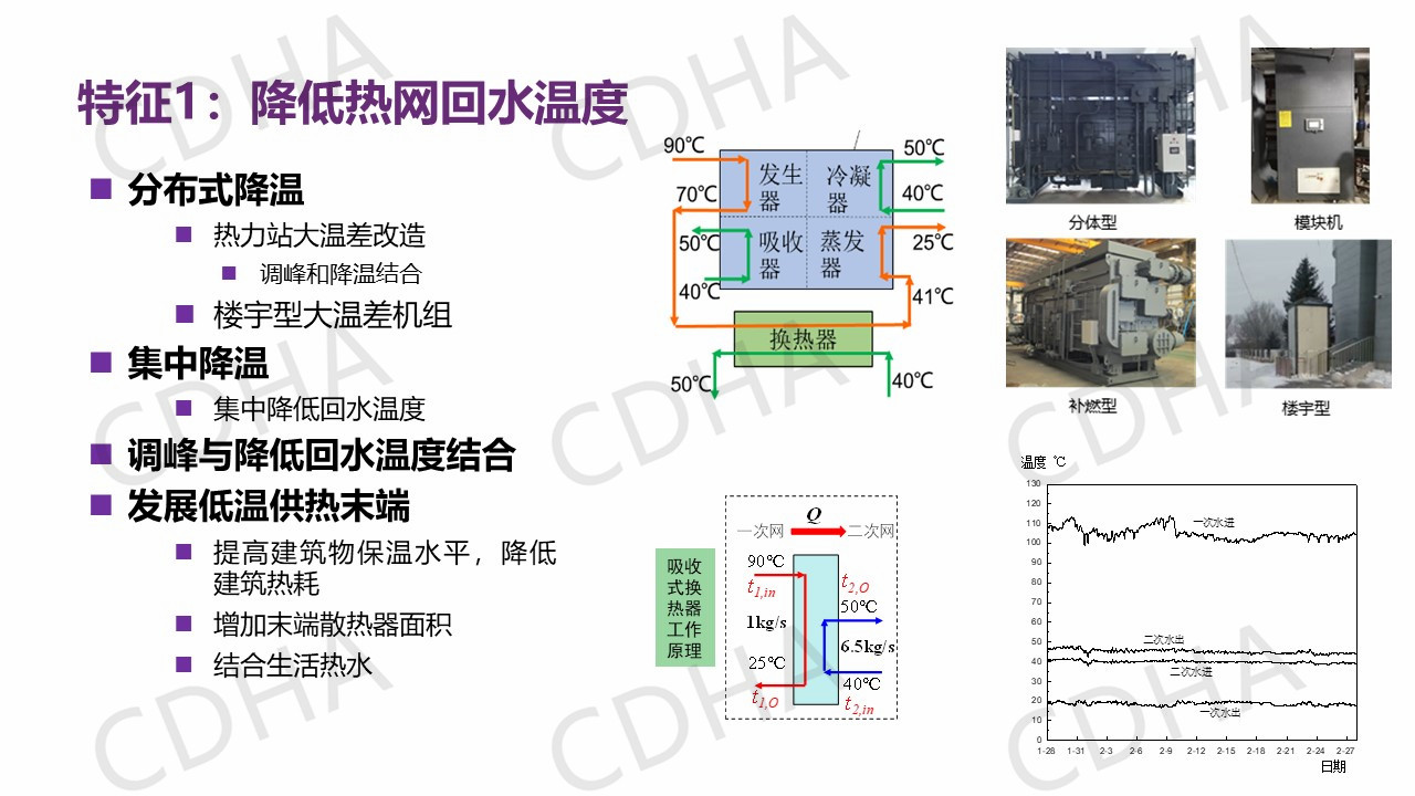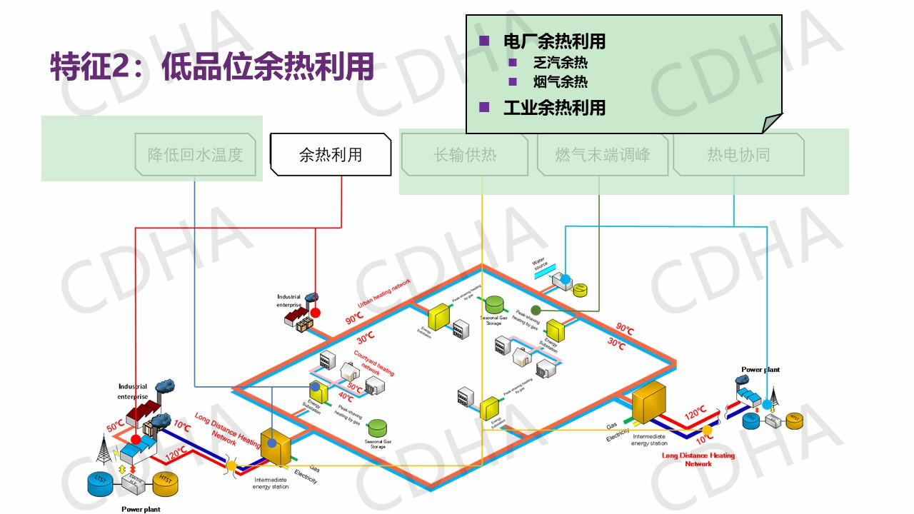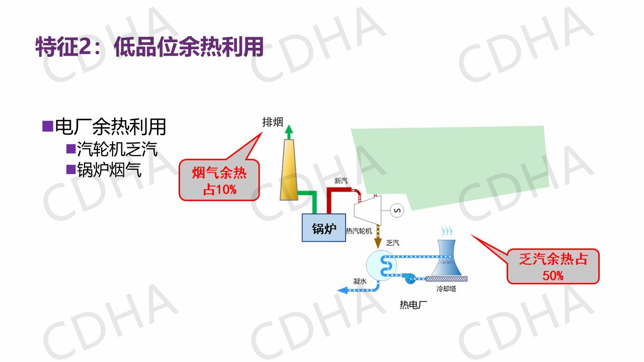 通過總結(jié)中國清潔供熱與國外供熱情況的不同,不難發(fā)現(xiàn)在我們供熱能源里還存在著豐富的余熱資源,而且這種余熱資源在國外是很難找到的,如果將余熱資源充分的利用進行供熱,那就是零能耗零排放。那么能不能把它用起來呢?這是一個很大的問題。因此我們歸納出了五個特征,如果把這五個特征都能實現(xiàn),那么剛剛總結(jié)的兩個目標就可以得以實現(xiàn)。