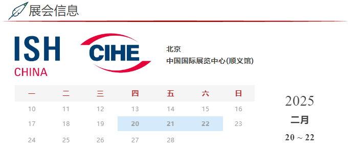 ISHChina & CIHE -中國國際供熱通風空調(diào)、衛(wèi)浴及舒適家居系統(tǒng)展覽會自1996年發(fā)展至今,已成為亞洲暖通全產(chǎn)業(yè)鏈年度盛會和全球品牌優(yōu)選的新品始發(fā)平臺。2025年展會將聚焦各類型解決方案,預(yù)計將匯聚約1,300家國內(nèi)外參展商,全新打造“供熱解決方案”“能源解決方案”“水路解決方案”“舒適家居解決方案”“智能與安裝技術(shù)”五大板塊。