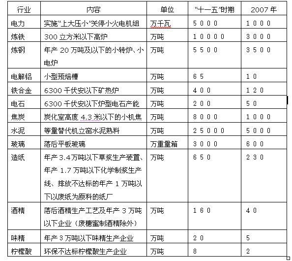 “十一五”時(shí)期淘汰落后生產(chǎn)能力一覽表