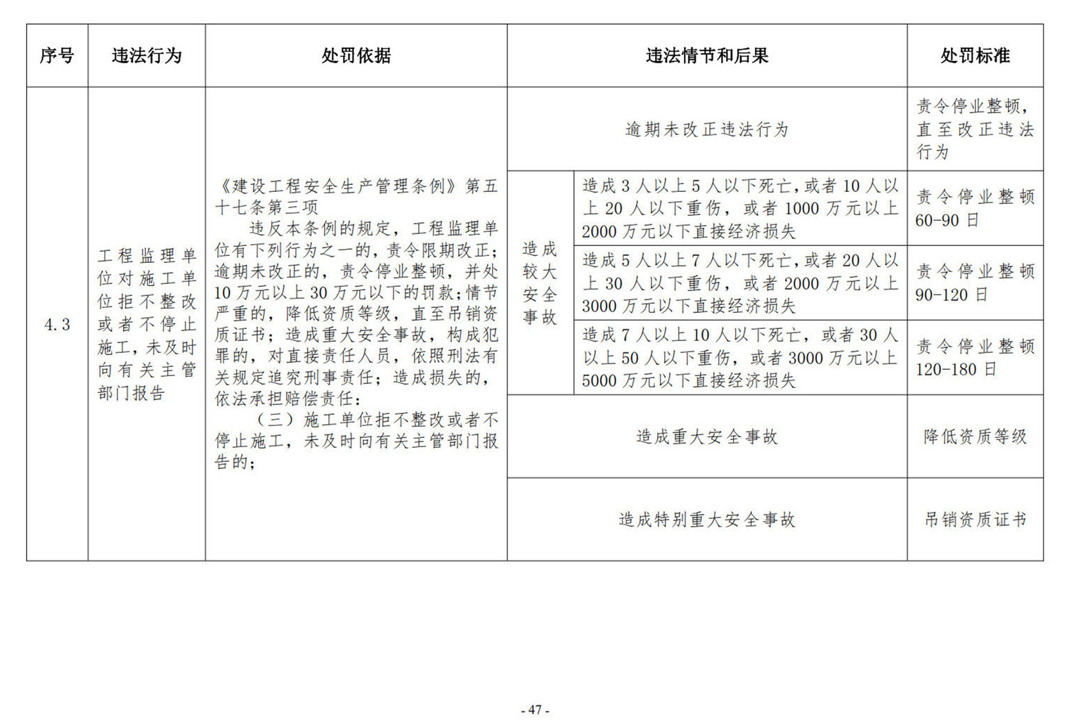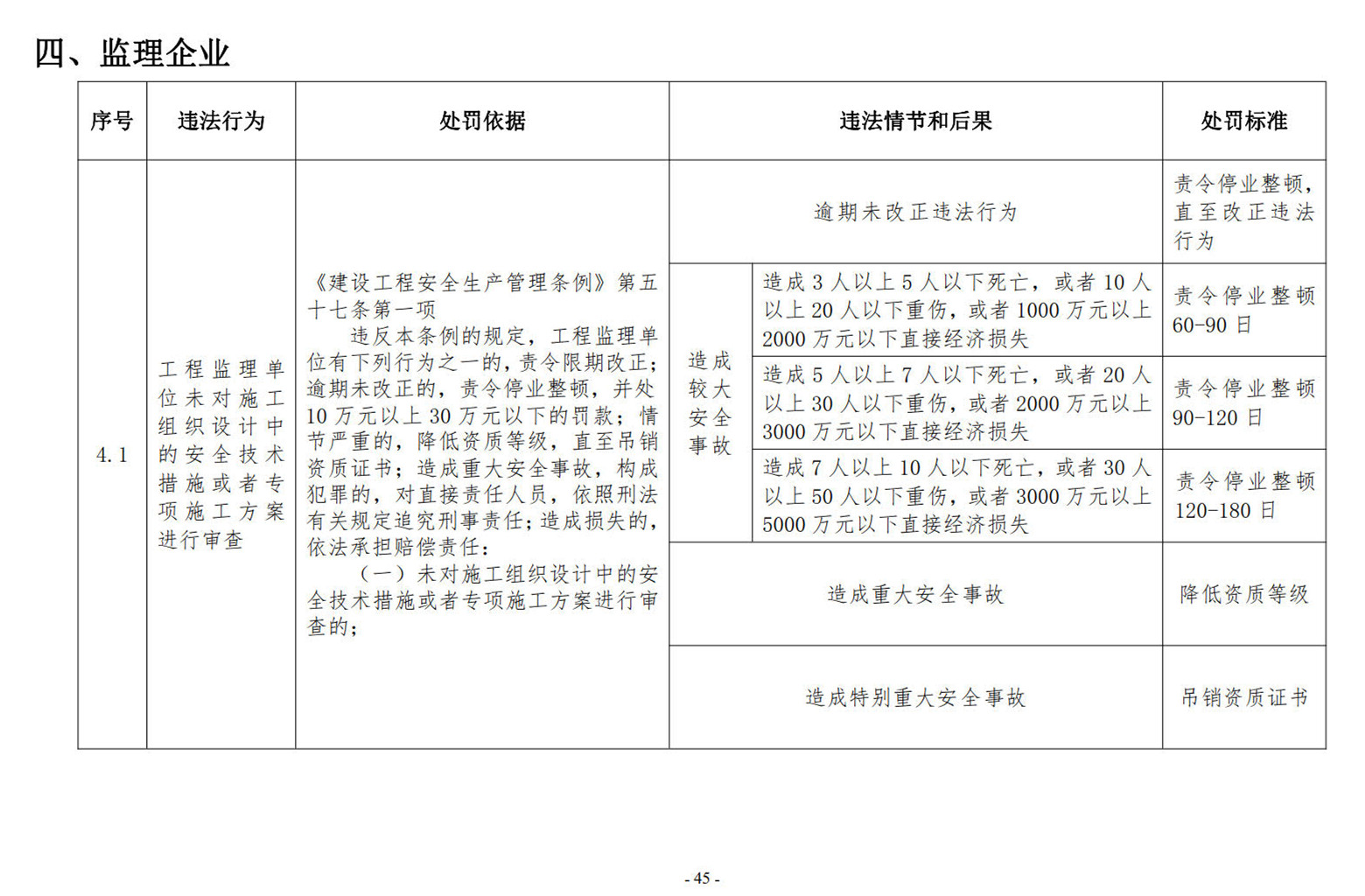 (四)工程勘察設(shè)計(jì)企業(yè)、建筑施工企業(yè)、工程監(jiān)理企業(yè)和注冊(cè)執(zhí)業(yè)人員多次實(shí)施違法行為,或在有關(guān)主管部門責(zé)令改正后,拒不改正,繼續(xù)實(shí)施違法行為的。
