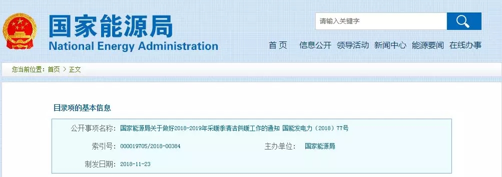 2018-2019年采暖季清潔供暖工作的通知