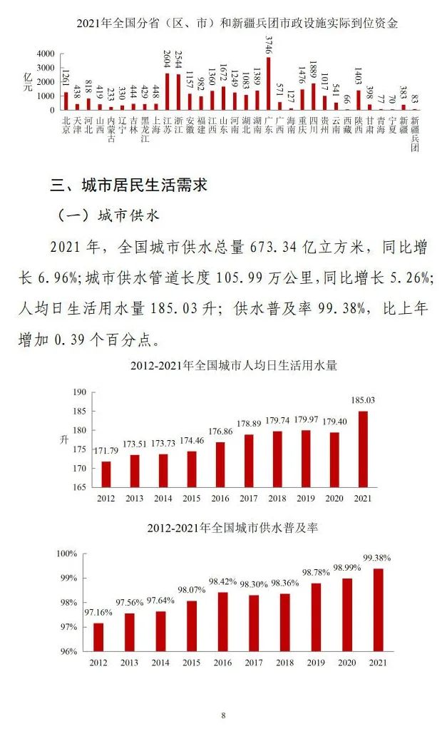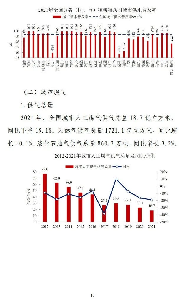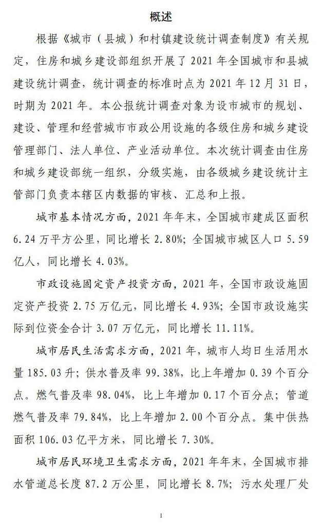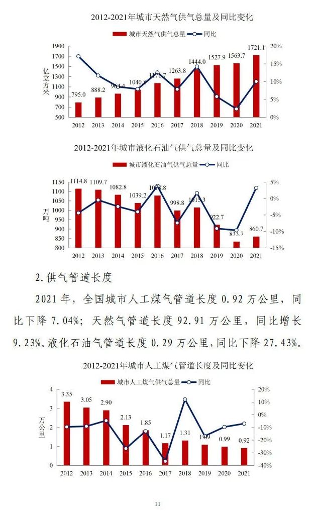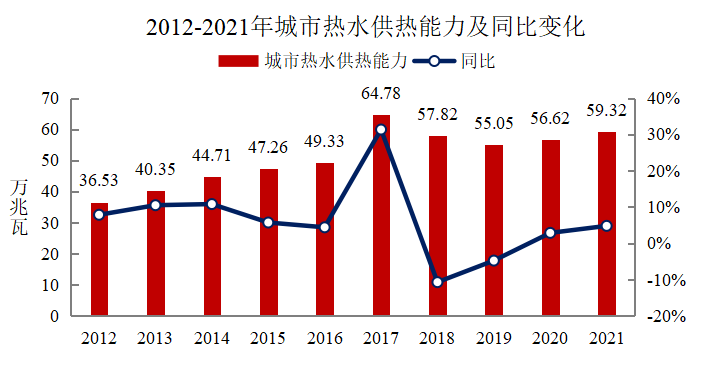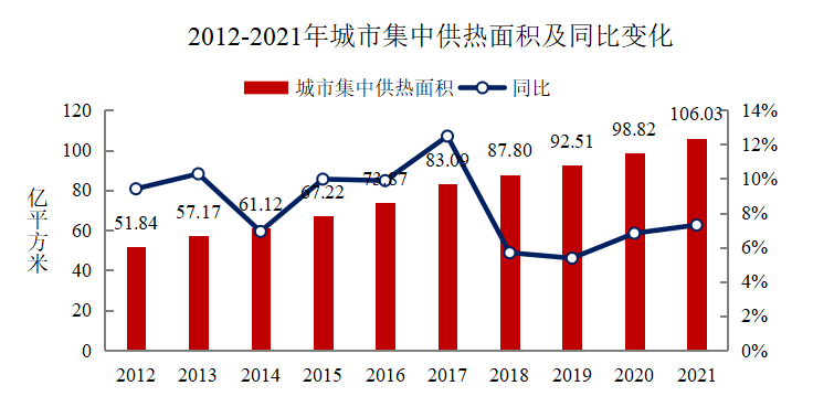 2021年年末,全國(guó)城市集中供熱面積106.03億平方米,同比增長(zhǎng)7.30%。