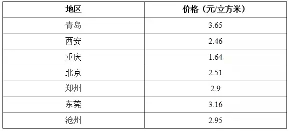 2、管道車用氣零售價格