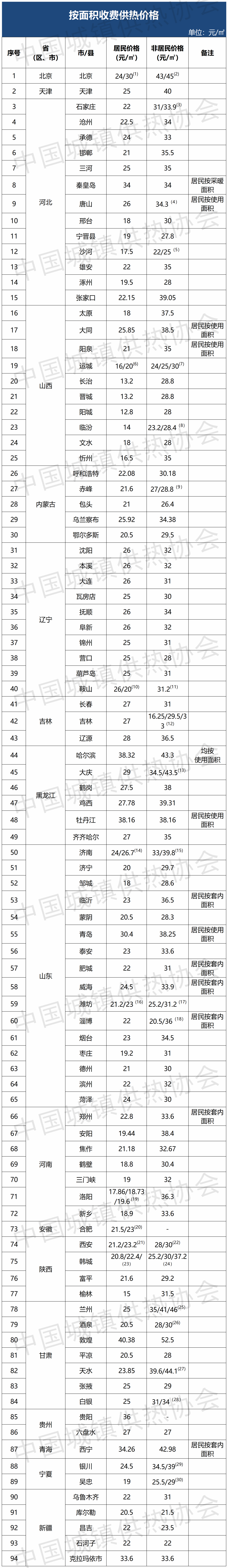 (29)銀川市非居民供熱價(jià)格:公建34.5元/㎡,商業(yè)39元/㎡。