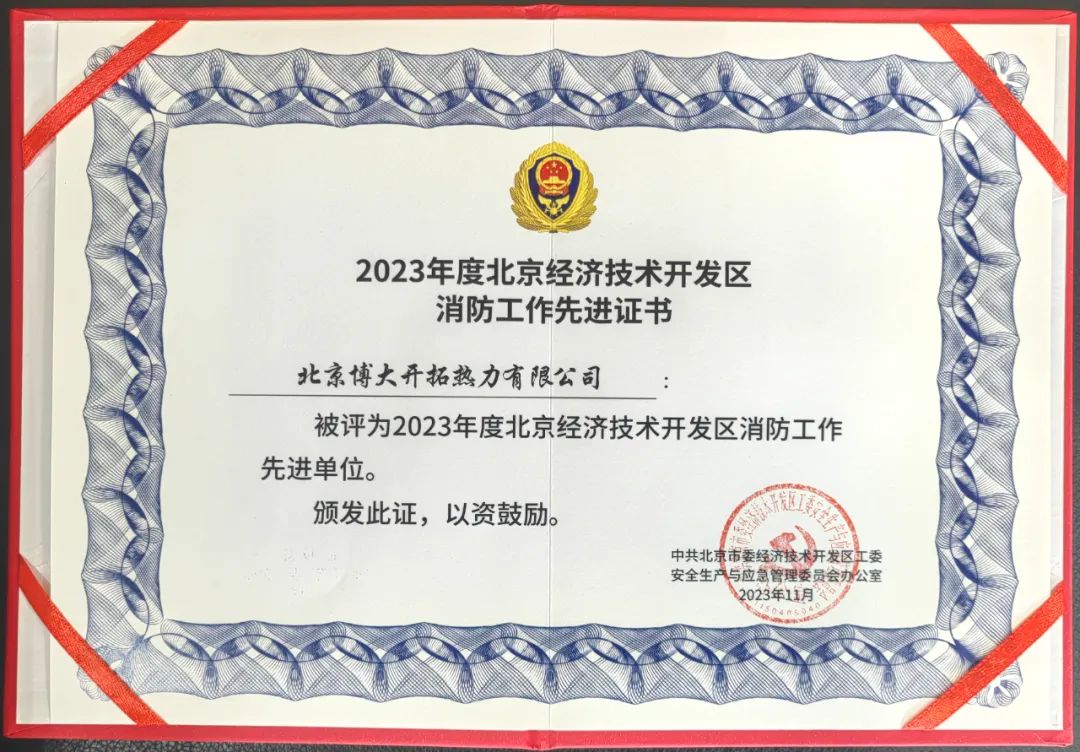 2.開拓熱力:榮獲“北京經(jīng)濟技術(shù)開發(fā)區(qū)2023年度消防工作先進單位”