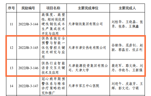 天津市政府發(fā)布《關(guān)于頒布2022年度天津市科學(xué)技術(shù)獎(jiǎng)的決定》。天津能源集團(tuán)“供熱行業(yè)智能語音交互關(guān)鍵技術(shù)及應(yīng)用”和“供熱系統(tǒng)安全預(yù)警與智能一體化管控關(guān)鍵技術(shù)研究與應(yīng)用”兩項(xiàng)科技成果榮獲三等獎(jiǎng)。