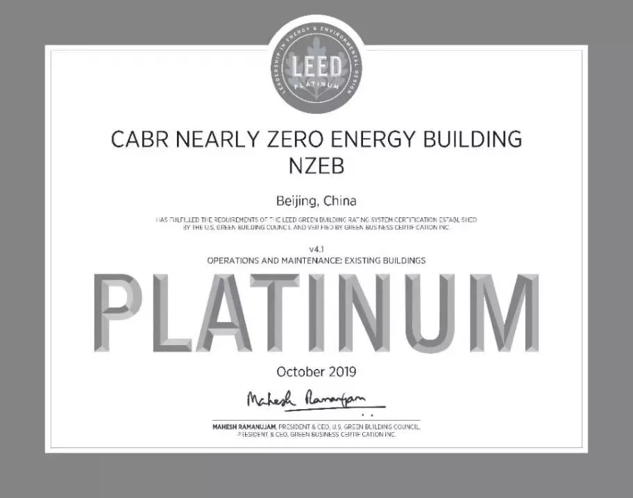 3.中國建研院:近零能耗示范樓獲得LEED-EBOM鉑金級認證