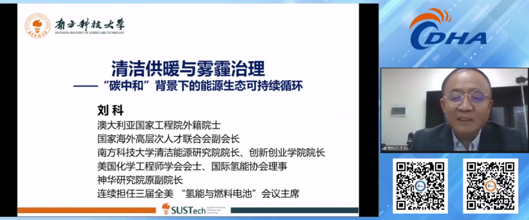 (1)3月26日,協(xié)會邀請澳大利亞國家工程院外籍院士、國家海外高層次人才聯(lián)合會副會長、南方科技大學(xué)清潔能源研究院院長劉科作了關(guān)于“清潔供暖與霧霾治理——‘碳中和’背景下的能源生態(tài)可持續(xù)循環(huán)”的主題演講。劉院士提出,微礦分離制類液體燃料、太陽能+供暖、甲醇?xì)淠艿惹鍧嵞茉醇夹g(shù)已經(jīng)取得了顯著的進(jìn)展,可有效解決集中供暖、分布式供暖、分布式熱電聯(lián)供等問題,并為碳達(dá)峰碳中和提供解決方案。