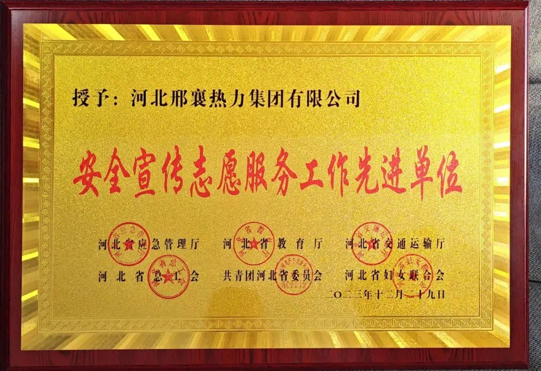 2.河北邢襄熱力:榮獲“安全宣傳志愿服務(wù)工作先進(jìn)單位”、“2023年度優(yōu)秀組織單位”稱號(hào)
