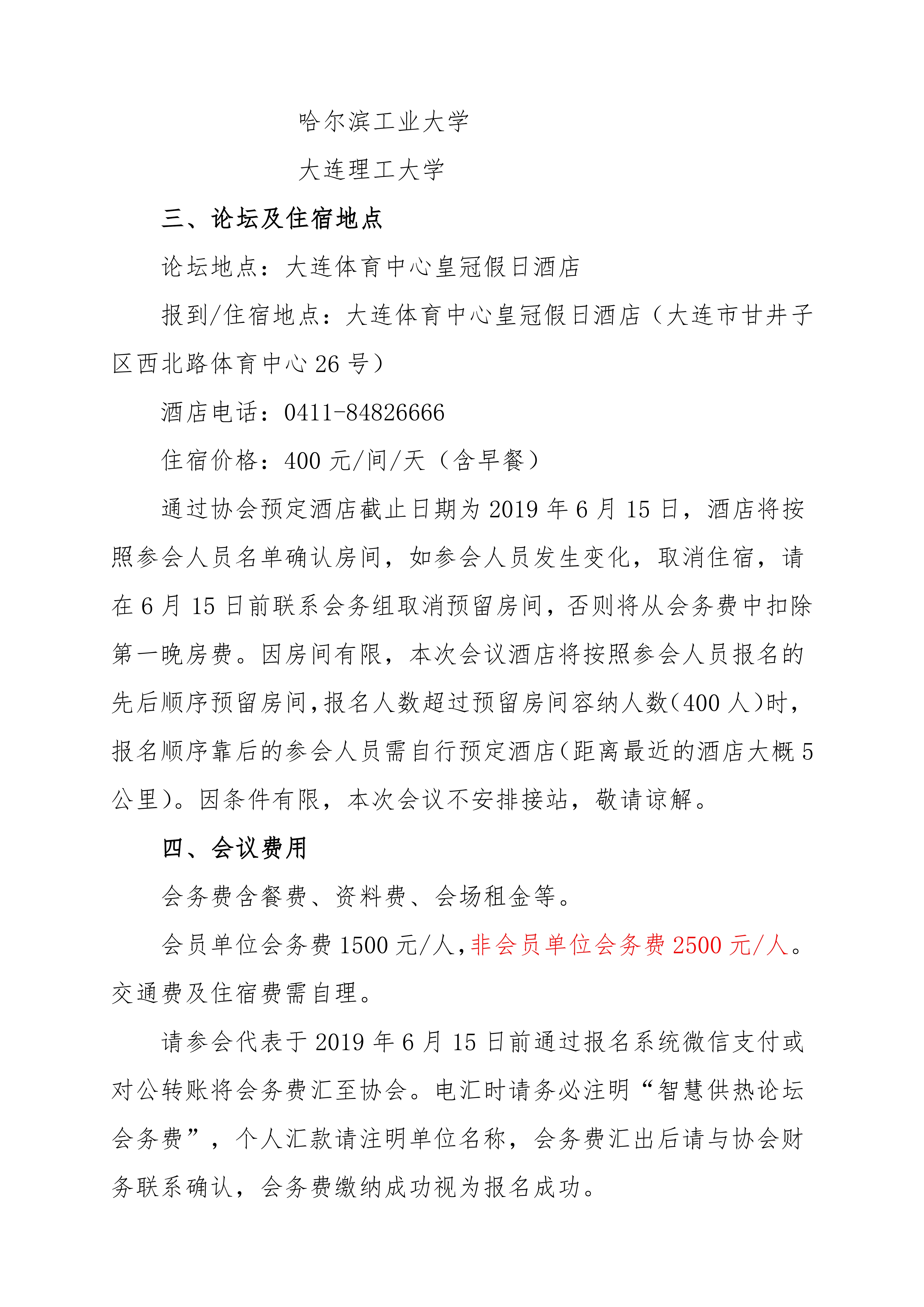 請(qǐng)參會(huì)代表于2019年6月15日前通過(guò)報(bào)名系統(tǒng)微信支付或?qū)D(zhuǎn)賬將會(huì)務(wù)費(fèi)匯至協(xié)會(huì)。電匯時(shí)請(qǐng)務(wù)必注明“智慧供熱論壇會(huì)務(wù)費(fèi)”,個(gè)人匯款請(qǐng)注明單位名稱,會(huì)務(wù)費(fèi)匯出后請(qǐng)與協(xié)會(huì)財(cái)務(wù)聯(lián)系確認(rèn),會(huì)務(wù)費(fèi)繳納成功視為報(bào)名成功。