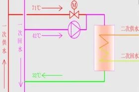 提前介入供熱項(xiàng)目前期,優(yōu)化技術(shù)參數(shù),確保系統(tǒng)特性匹配和整體散熱效能;將主管網(wǎng)一次回水引入供熱機(jī)組換熱為地板采暖用戶供熱,降低利用回水溫度約10℃,提升低品位熱能利用率(見圖3);完善考核管理機(jī)制,利用設(shè)備健康狀態(tài)監(jiān)控、能耗分析系統(tǒng)監(jiān)測一次網(wǎng)回水溫度,提升管網(wǎng)熱能輸配效率。