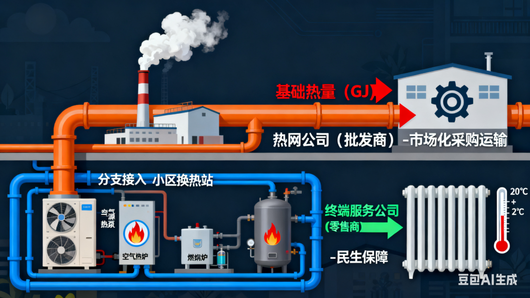 模式:它們從熱網(wǎng)公司批量“進(jìn)貨”(基礎(chǔ)熱量),并自行配置空氣源熱泵、燃?xì)忮仩t等調(diào)峰熱源,靈活調(diào)節(jié),最終確保用戶家中溫度達(dá)標(biāo)。它們才是民生保障的“最后責(zé)任人”。