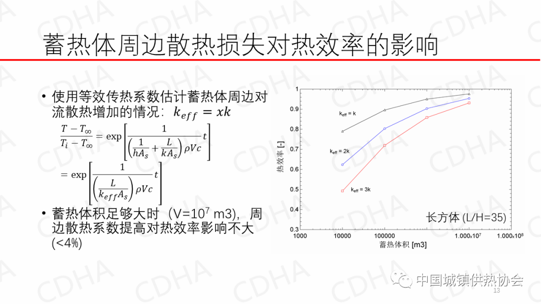 所以這幾種做法最后比起來還是大的一個深坑的最好,因?yàn)樽サ氖莾杉聝?,一個是熱量不能丟,一個是品位盡可能不能丟,這樣儲熱是上面是熱水,底部是涼水,進(jìn)的時候(上面)進(jìn)熱的,涼的從底下出去,取的時候是上面出來熱水,涼水補(bǔ)到里邊去,要的是中間一個冷熱分層,那個(斜溫層)變化是(上下)來回變的,(熱水涼水分層)不能摻和。所以得通過各種辦法補(bǔ)水的氣壓,緩慢的取水裝置等等,這就能夠特別好的解決里邊的問題,總的結(jié)果就是效率很高。