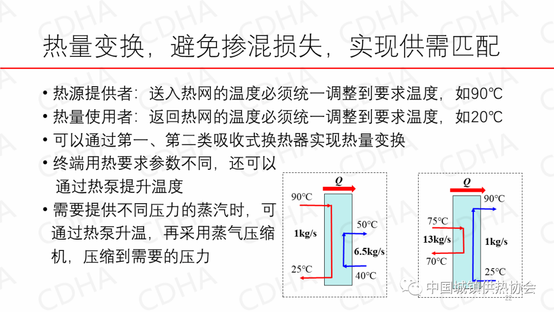 第二是地理位置不一致,所以還得輸送時能(夠)低成本。第三是參數(shù)的事,蒸汽出熱,熱的溫度不一樣,蒸汽的壓力不一樣,那么就得變換,實(shí)現(xiàn)各種各樣溫度壓力等熱量品位要一致。