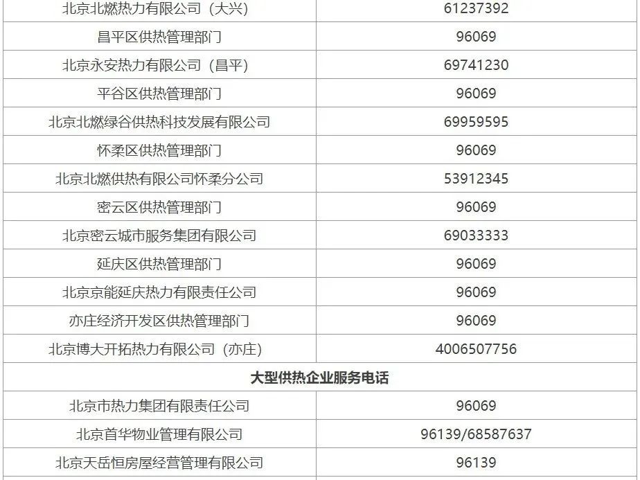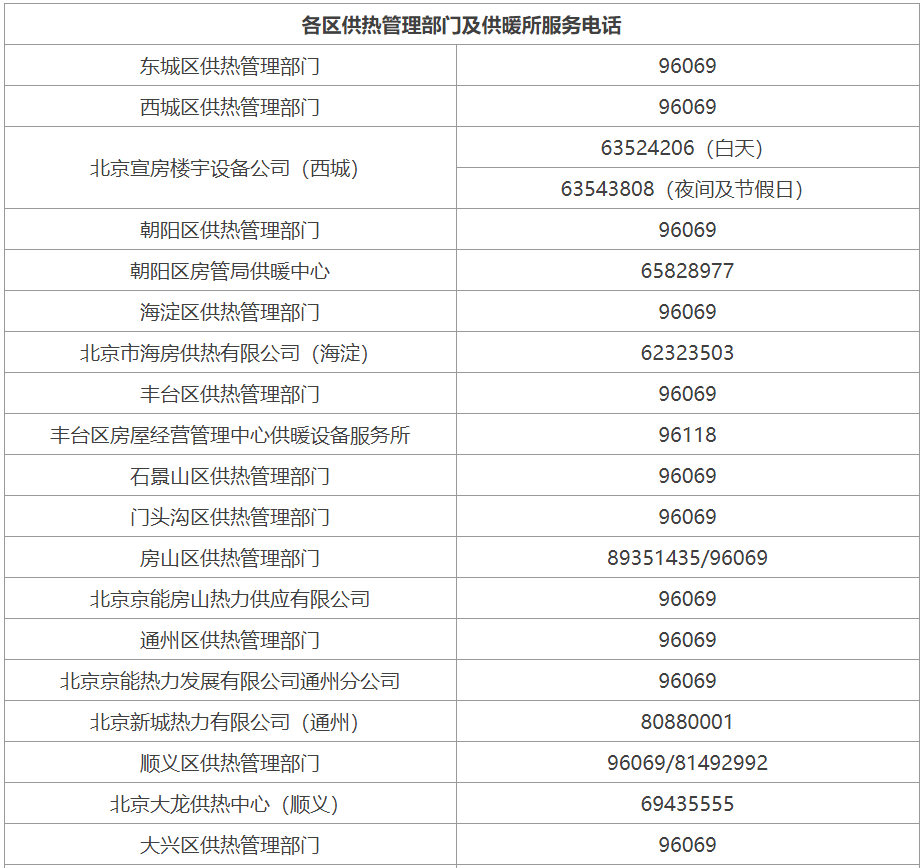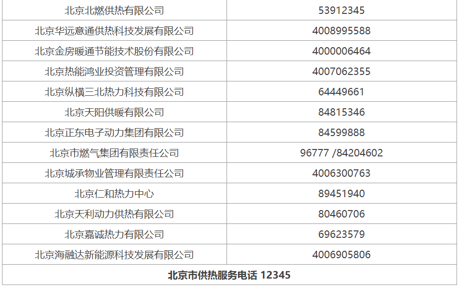 北京市2022-2023年采暖季供熱服務電話