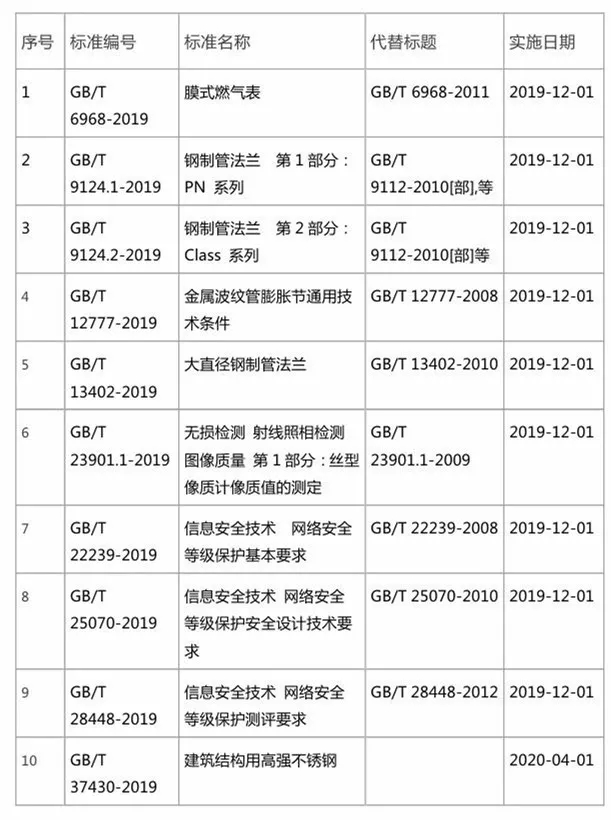 近日,國家市場監(jiān)督管理總局(國家標(biāo)準(zhǔn)化管理委員會)批準(zhǔn)《金屬波紋管膨脹節(jié)通用技術(shù)條件》等173項國家標(biāo)準(zhǔn)和3項國家標(biāo)準(zhǔn)修改單,與供熱相關(guān)的標(biāo)準(zhǔn)列表如下: