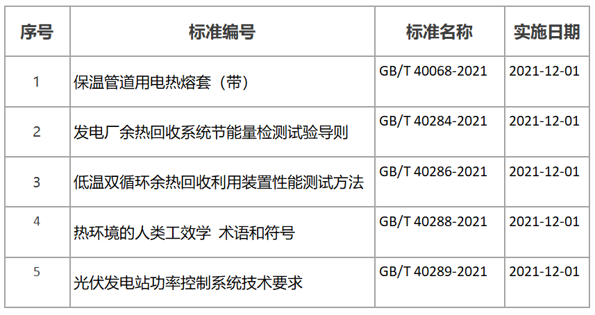 近日,國家市場監(jiān)督管理總局(國家標準化管理委員會)批準《保溫管道用電熱熔套(帶)》等386項推薦性國家標準和3項國家標準修改單。與供熱相關的標準列表如下: