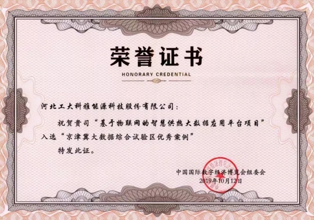 大會發(fā)布了《京津冀大數(shù)據(jù)綜合試驗區(qū)優(yōu)秀案例》,經(jīng)過專家評選94家企業(yè)的項目入選《京津冀大數(shù)據(jù)綜合試驗區(qū)優(yōu)秀案例》,其中河北工大科雅能源科技股份有限公司“基于物聯(lián)網(wǎng)的智慧供熱大數(shù)據(jù)應用平臺項目”成功入選,并作為京津冀10家企業(yè)代表之一登臺領獎。