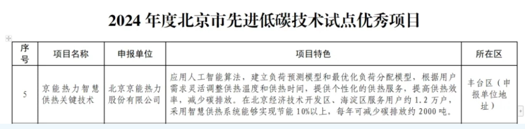 北京市生態(tài)環(huán)境局發(fā)布《關于公布2024年度北京市低碳試點優(yōu)秀項目的通告》,京能熱力智慧供熱關鍵技術榮獲2024年度北京市先進低碳技術試點優(yōu)秀項目。