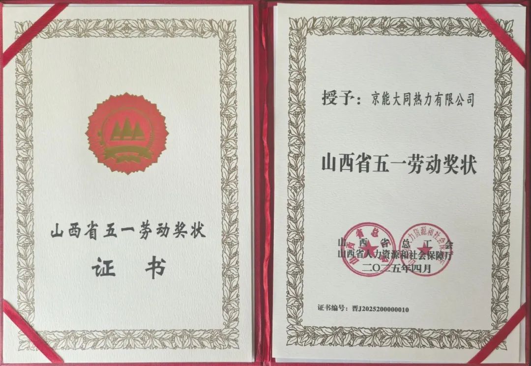 3.大同熱力:榮獲“山西省五一勞動獎狀”