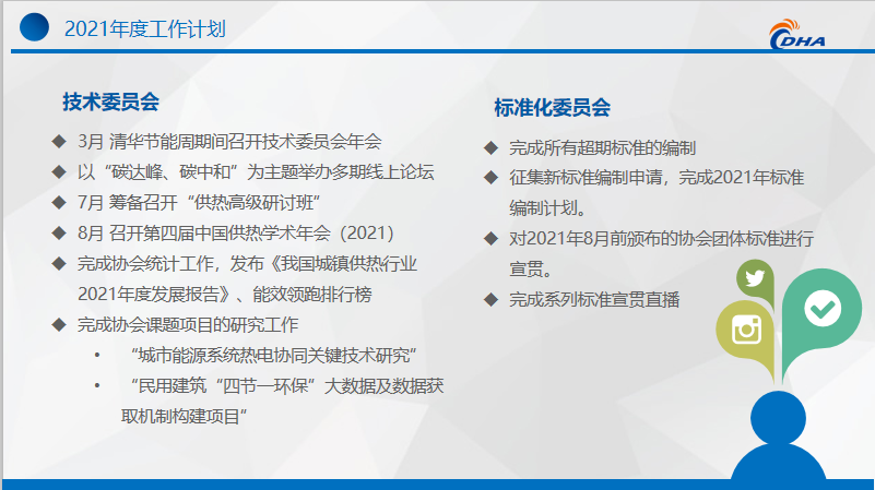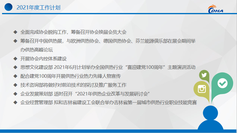 牛小化表示:2021年,協(xié)會將繼續(xù)加強(qiáng)黨建和意識形態(tài)工作,大力宣傳黨中央大政方針,宣傳熱力行業(yè)先鋒模范;籌備開展碳達(dá)峰碳排放相關(guān)主題線上直播活動;召開協(xié)會換屆大會;主辦中國供熱展暨供熱高峰論壇;繼續(xù)召開第四屆中國供熱學(xué)術(shù)年會(2021);有序開展標(biāo)準(zhǔn)宣貫標(biāo)準(zhǔn)制定工作;做好前沿技術(shù)探討及推廣、企業(yè)改革與發(fā)展研討會等活動;舉辦供熱行業(yè)“慶祝中國共產(chǎn)黨建黨100周年”主題活動。在做好疫情防控的同時,充分發(fā)揮協(xié)會的橋梁紐帶作用,加強(qiáng)行業(yè)的技術(shù)交流,反映行業(yè)呼聲,研究供熱政策,做政府好幫手,助力供熱行業(yè)健康發(fā)展。
