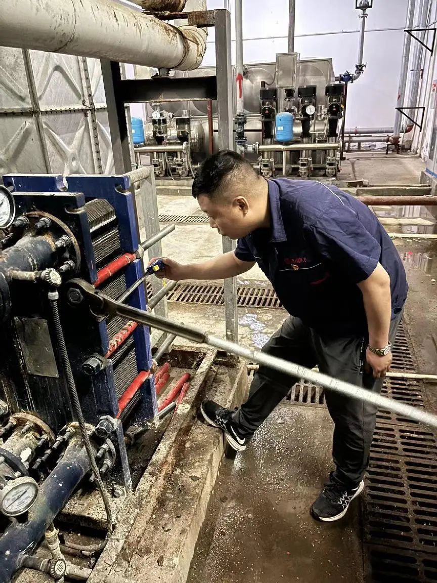 供暖設(shè)備的維護,不只是冬季供暖。為了冬季供熱管網(wǎng)能正常運行,供熱管家們在最熱的季節(jié)里揮汗如雨,開展“冬病夏治”工作。在潮濕逼仄的地下室里,李亞南和同事們一起養(yǎng)護熱力站。地下室里又悶又熱,溫度高、濕度大,人進去就出一身汗,一動便汗如雨下,平時加班加點更是家常便飯。在進入公司這十來年里他始終保持退伍不褪色的工作作風(fēng),不怕苦不怕累的精神,也從一名“小白”成長為維修換熱器的“專家”。