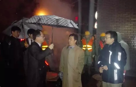 當(dāng)晚11時(shí)在輸配公司副經(jīng)理羅錚的陪同下,金部長一行參觀了北京熱力翠微路熱力管線施工現(xiàn)場。