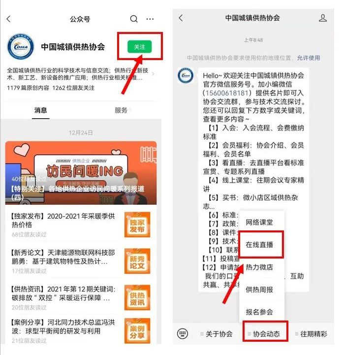 關(guān)注本公眾號“中國城鎮(zhèn)供熱協(xié)會”,在底部菜單欄“協(xié)會動態(tài)-在線直播”中點擊觀看。