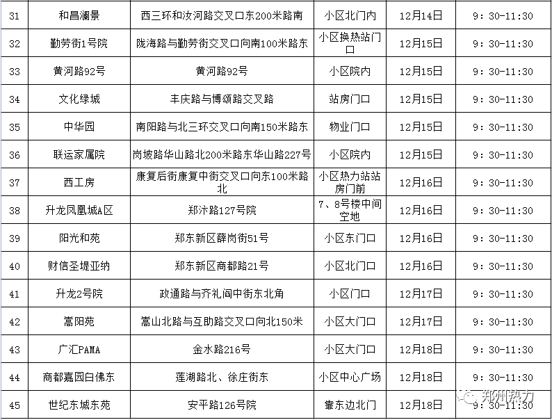 2021-2022采暖季已供熱一月有余。為進一步推進“我為群眾辦實事”實踐活動走深走實,解決好熱用戶用熱“急難愁盼”問題,提高為民服務精準性、時效性。12月10日至18日9:30——11:30,鄭州熱力集團有限公司七個供熱分公司將走進海灘街1號、中國郵政鄭州分公司、橄欖城柏林印象、龍湖長城公園、沐陽園、裕華光合花園、裕龍小區(qū)等45個小區(qū)開展“訪民問暖”活動。如您在暖氣使用過程中遇到問題,可以在“訪民問暖”進社區(qū)活動時進行現(xiàn)場咨詢和報修,也可以隨時撥打68890222客戶服務電話。(來源:鄭州熱力)