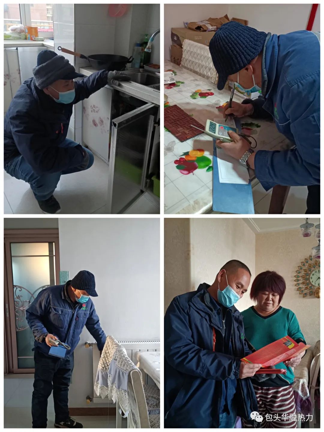 在本次訪民問暖專項活動中,包頭華融熱力在小區(qū)內(nèi)建立咨詢臺,為用戶講解供熱知識、解決供熱問題。分組走訪用戶,實測用戶溫度情況、檢查供暖系統(tǒng)運行狀態(tài)、診斷和協(xié)助解決用戶供暖存在的問題。目前累計發(fā)放資料、入戶測溫2000余戶,大多數(shù)用戶表示對供熱效果滿意。對于轄區(qū)用戶提出的供熱問題,工作人員直接入戶幫助排查問題、解決問題并做好相關記錄以便后期回訪。