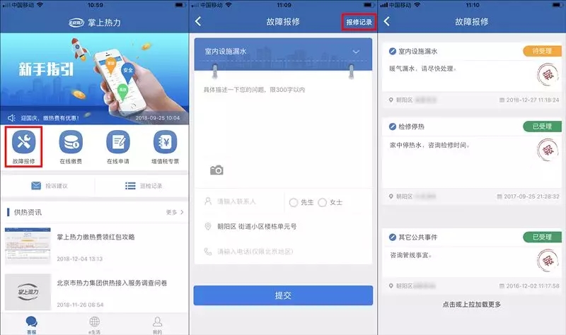 目前包含漏水、不熱兩大訴求的報(bào)修服務(wù)