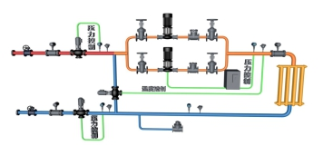 直供混水模式下,各供熱站的壓力控制成為運行安全的關(guān)鍵環(huán)節(jié)。吉林市城區(qū)的地勢高差基本在40m范圍之內(nèi),在處理地勢高差問題上采取的是加設(shè)加壓泵或回水泵的方式。